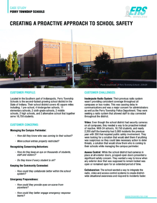 Let ERS Wireless help your school implement an integrated voice, video security, and incident management system that enables you to be more proactive to potential threats.
